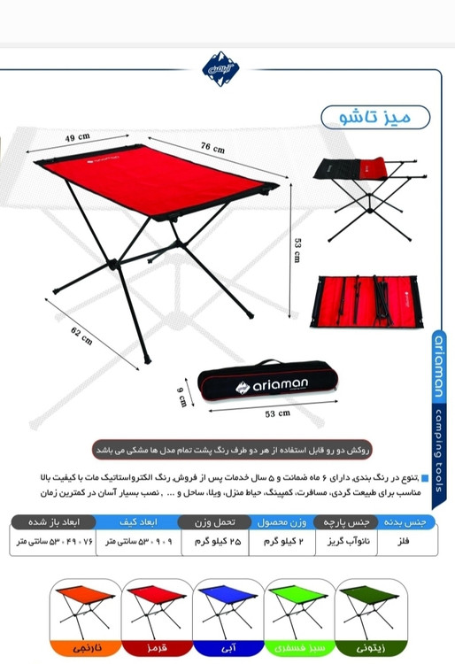 میز تاشو کمپینگ برند آریا من