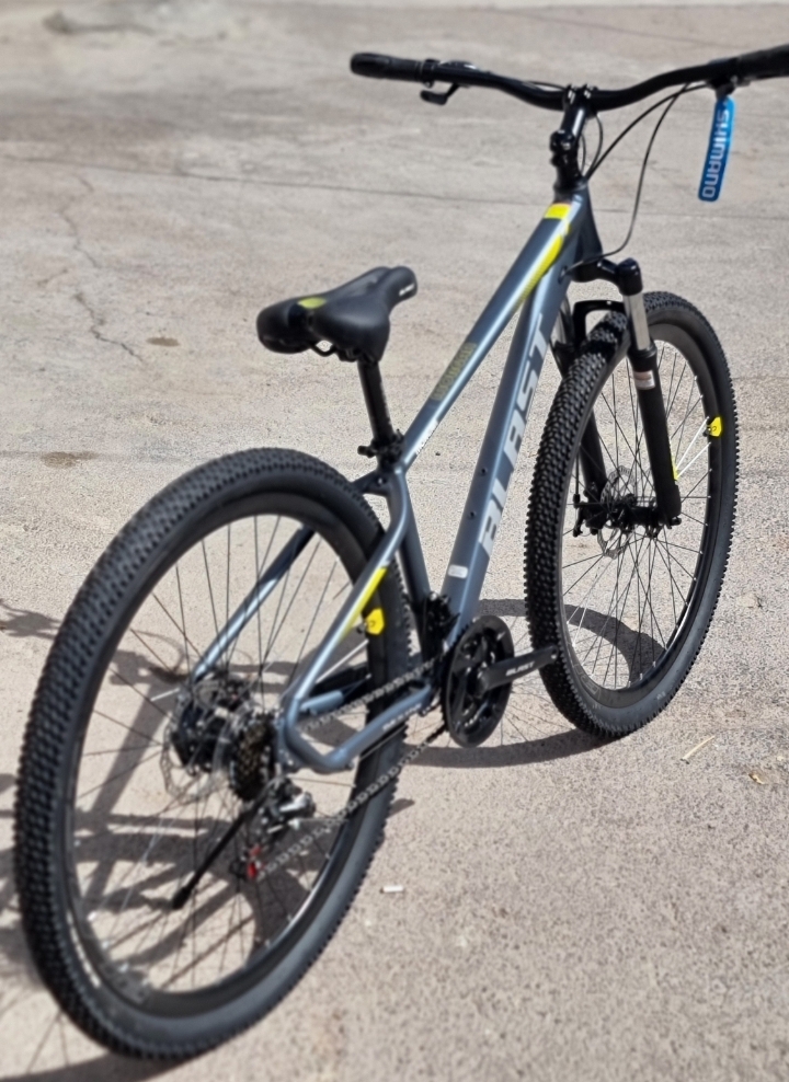 دوچرخه بلست سایز طوقه ۲۹ سایز تنه ۳۸ سانتیمتر تنه آلمینیومی 6061 21 سرعته ست دنده شیمانو تورنی tz دسته دنده شیمانو اصلی کمک قفل شو ترمز دیسک و سیم لاستیک ها کندا